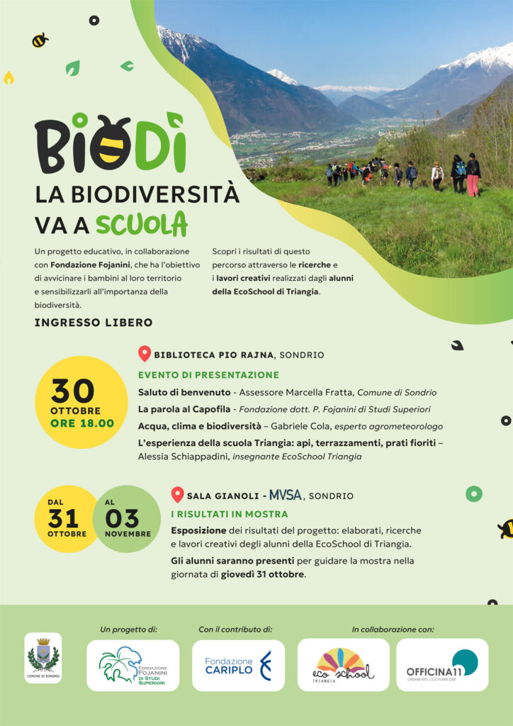Il progetto BioDì nasce dalla collaborazione tra la Fondazione Fojanini di Studi Superiori, EcoSchool Triangia e Officina11, con il contributo di Fondazione Cariplo.